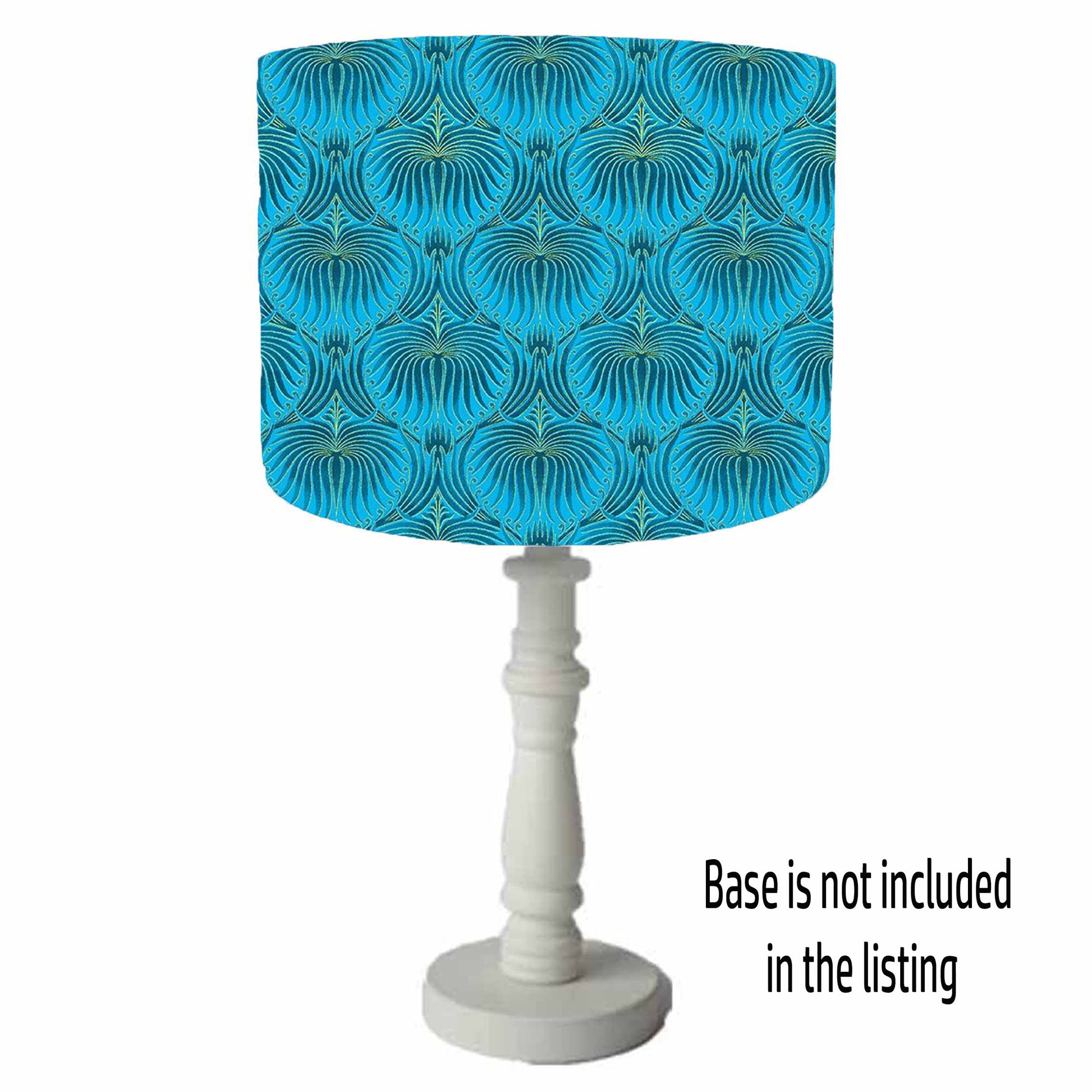 Blue Turquoise Fan Feather Lampshade, Geometric Home Decor, Brushed Metallic Lining