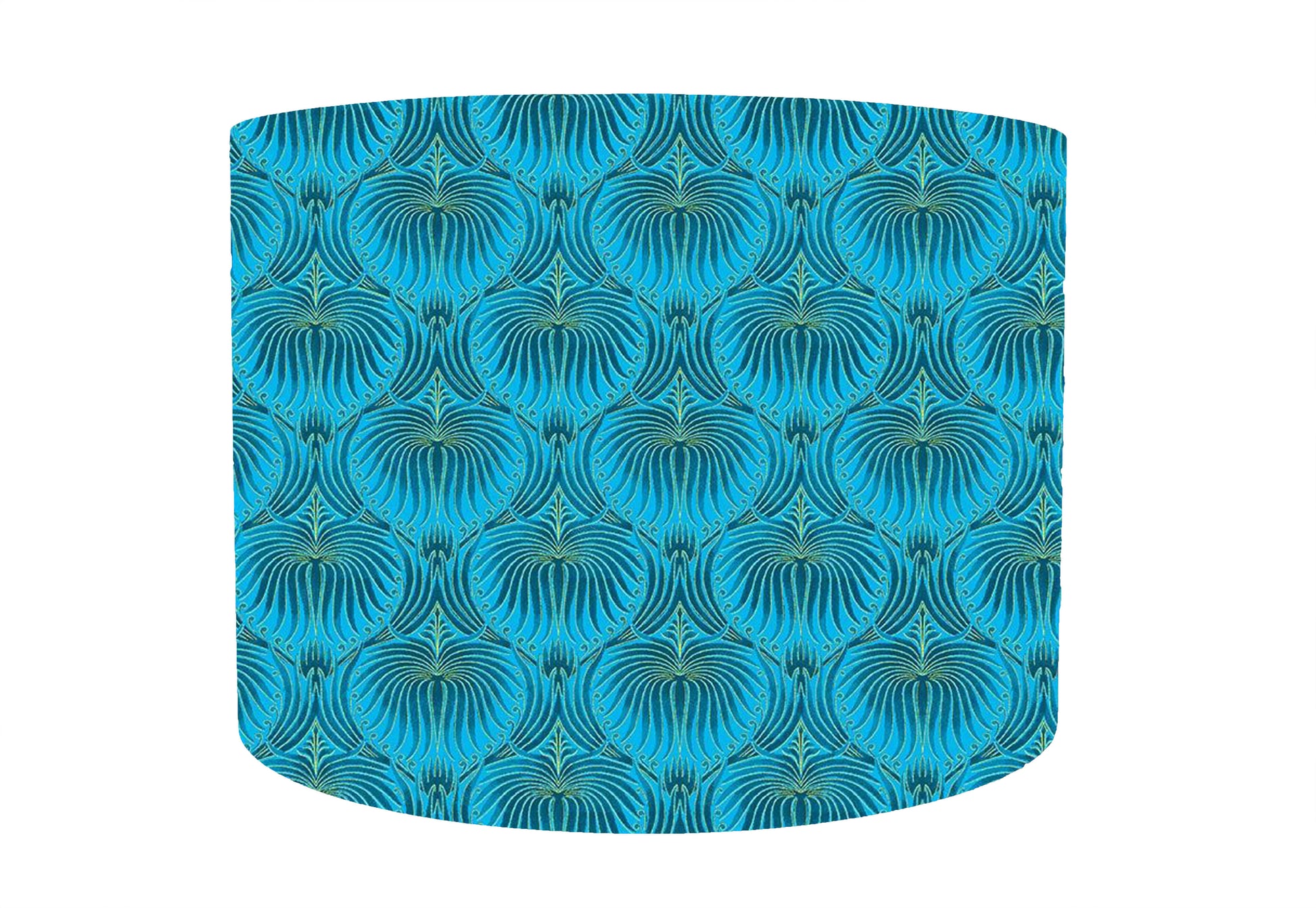 Blue Turquoise Fan Feather Lampshade, Geometric Home Decor, White Lining