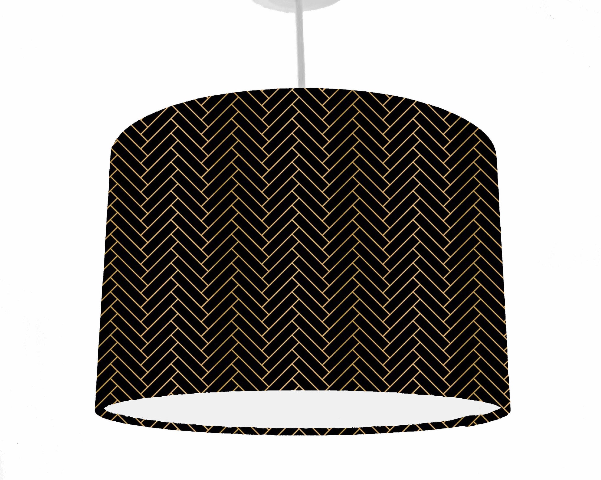 Gold Herringbone Lampshade, Black And Gold Decor, White Lining