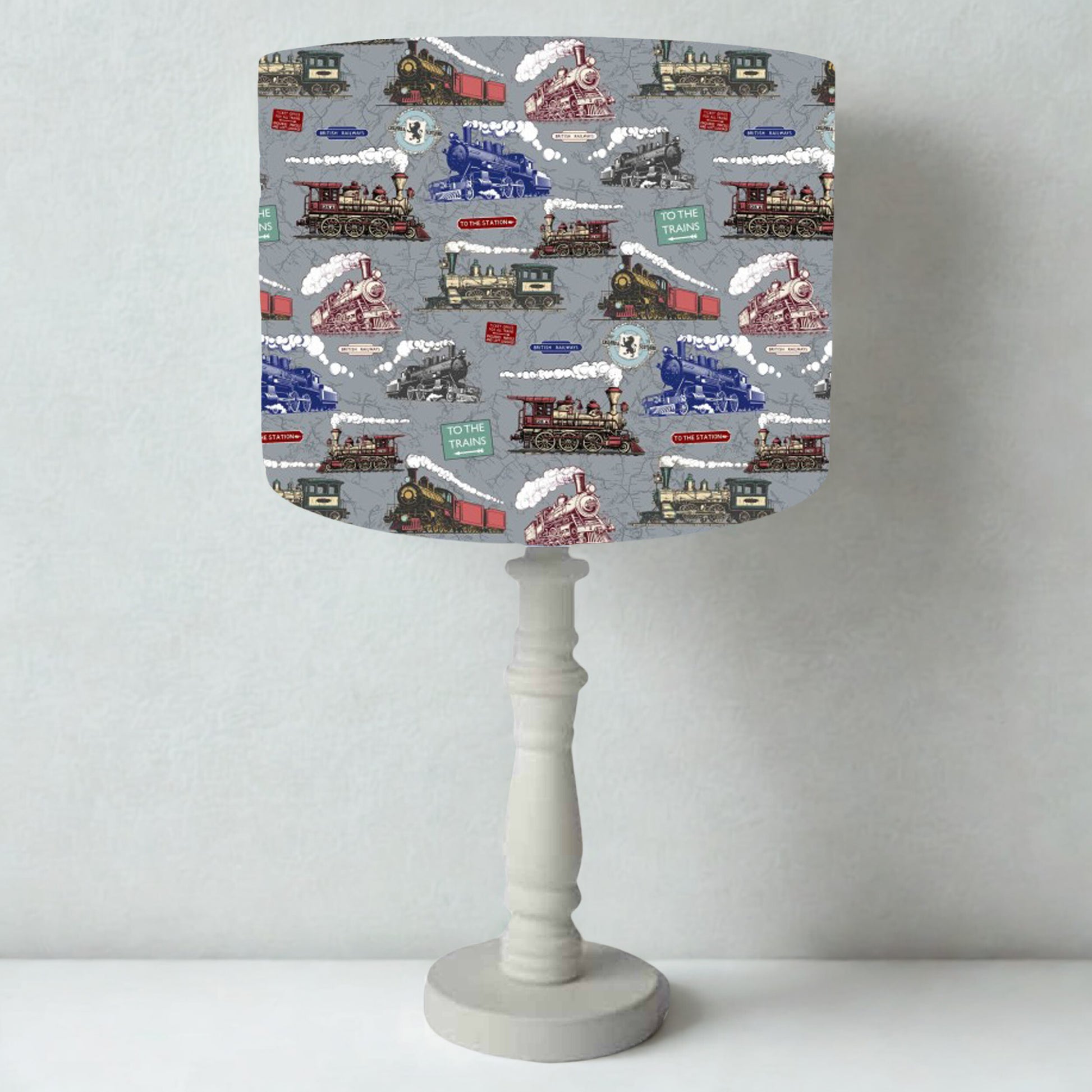 Grey Steam Train Lampshade, Railway Home Decor, Boy Bedroom Light