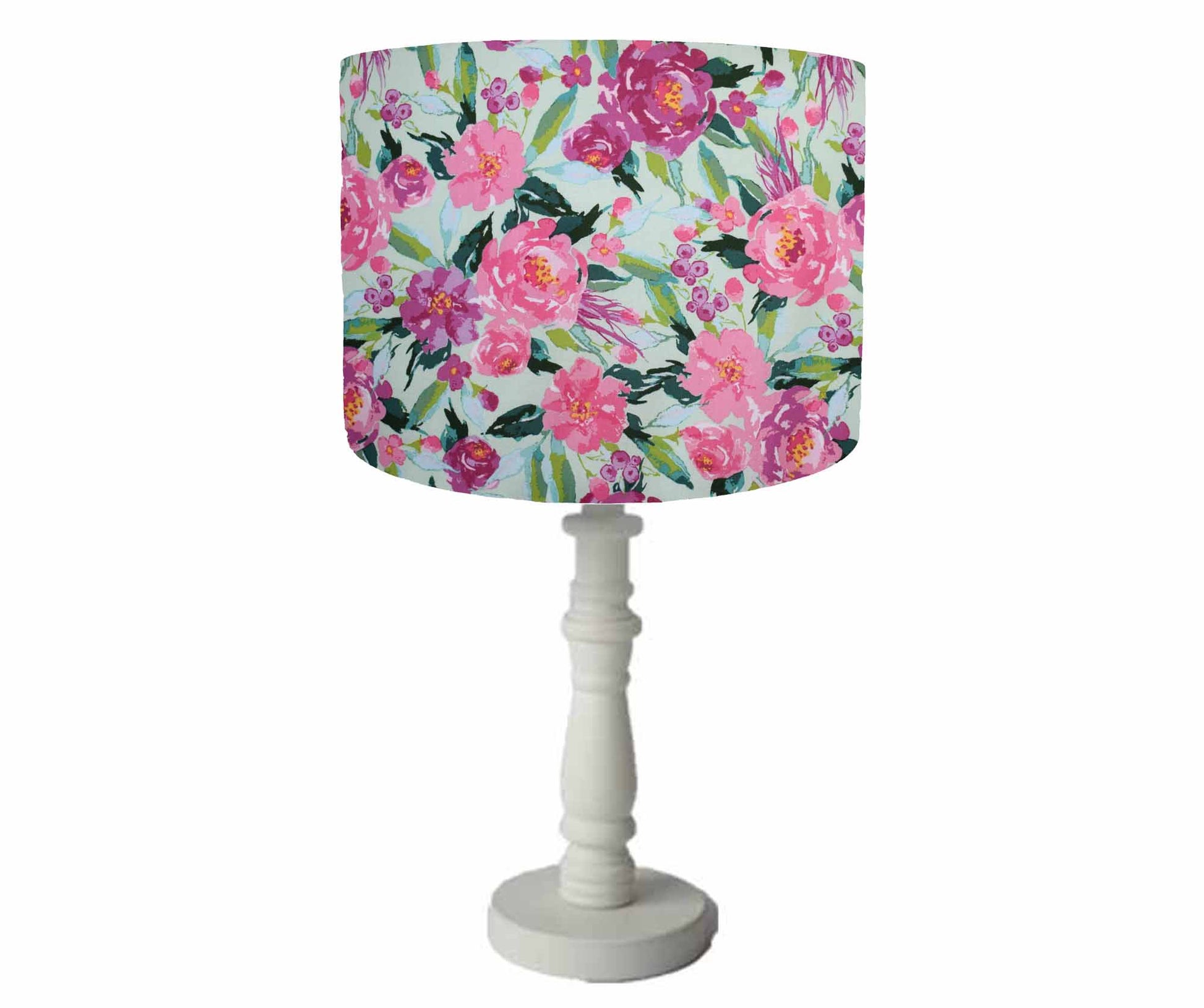 Mint And Pink Floral Lampshade, Floral Room Decor
