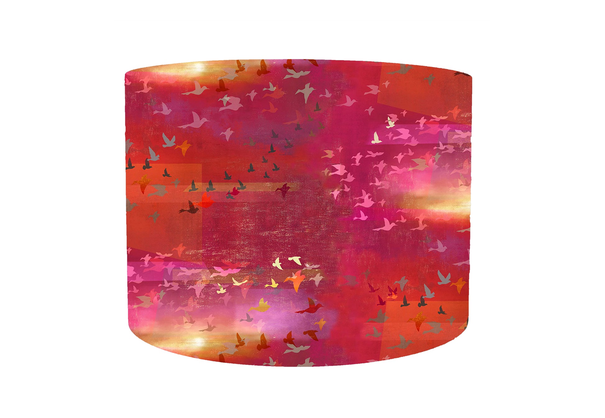 Sunset And Birds Lampshade, Red And Gold Light Shade - White Lining