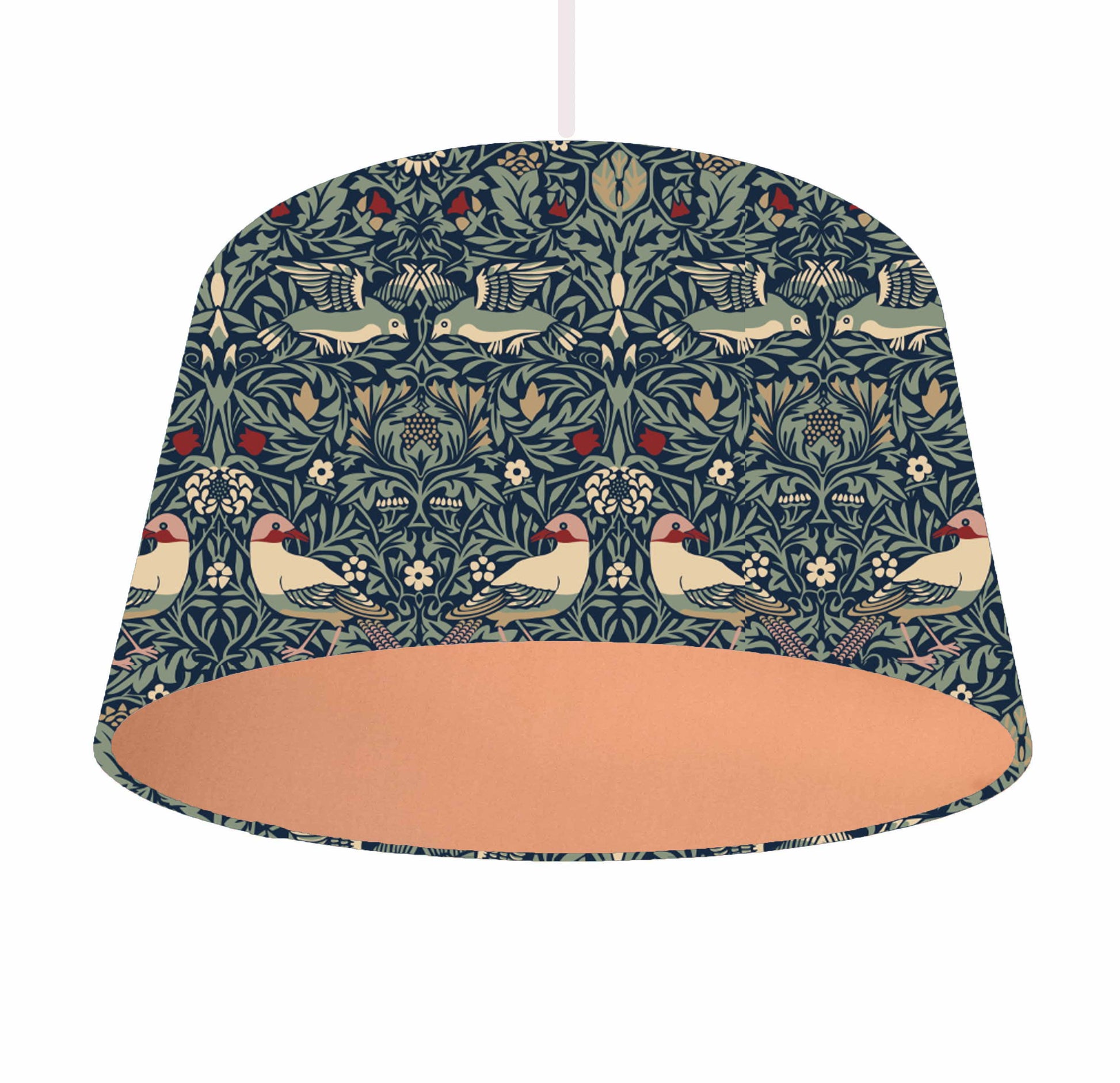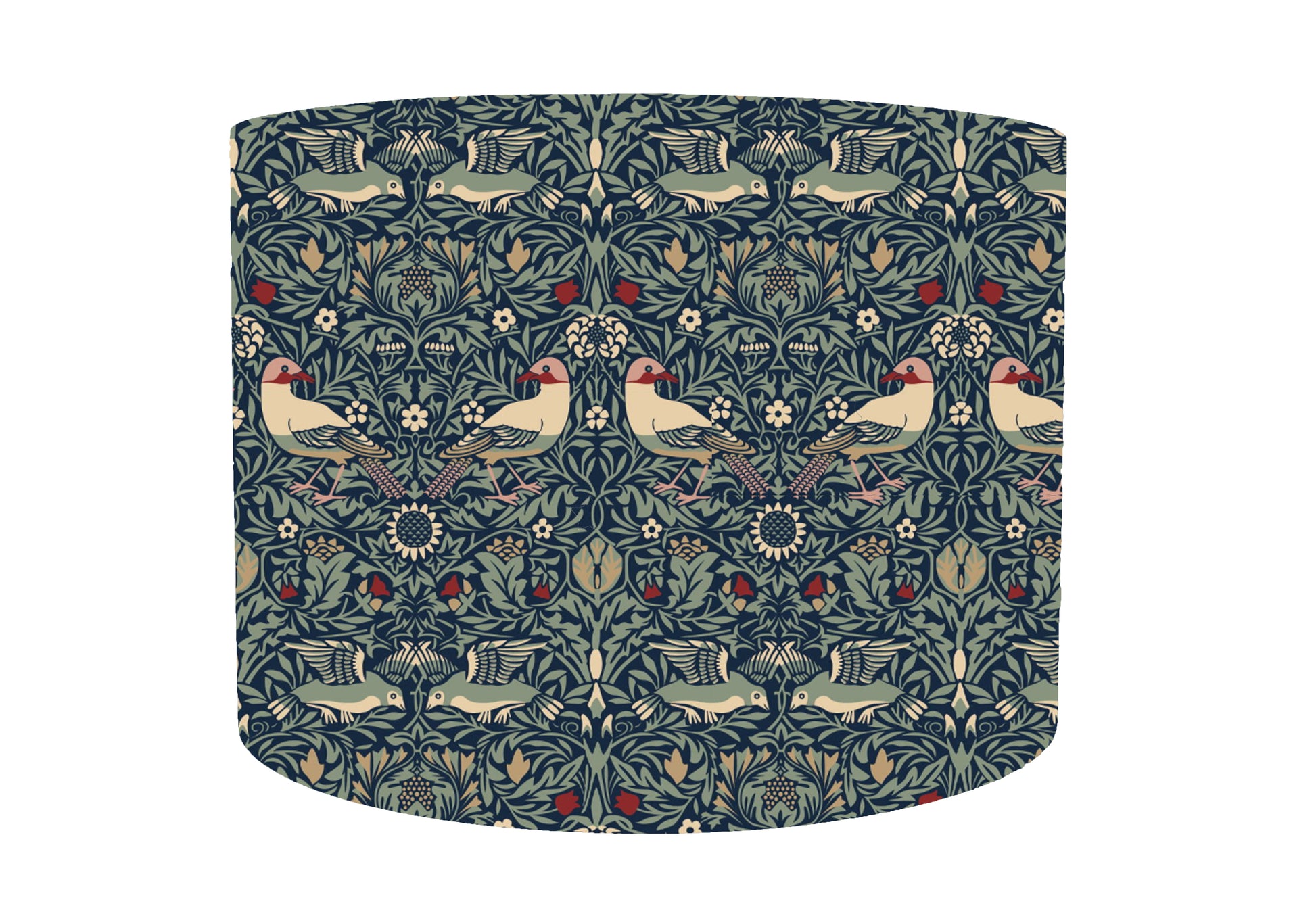 This William Morris bird themed lampshade is hand made by me using Licenced William Morris Winter Garden fabric by Craft Cotton but is not a licenced William Morris product.